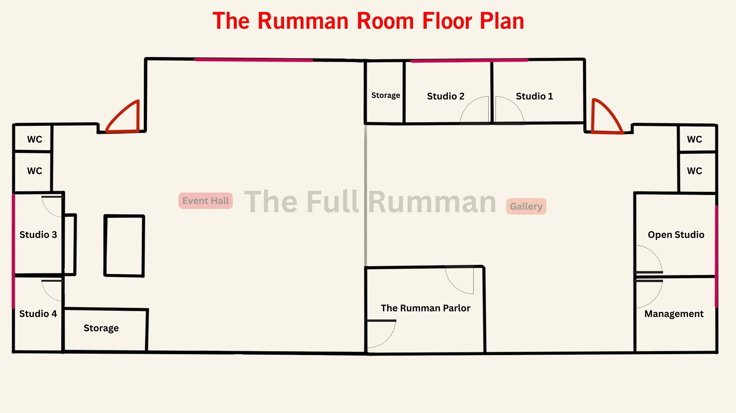 The Rumman Room offers affordable rentals for exhibitions, events, and gatherings both large and small; the hub for creative professionals, students, and patrons to come together. Express yourself through our flexible event spaces or become a resident artist and lead the collaboration and innovation from your own studio.
